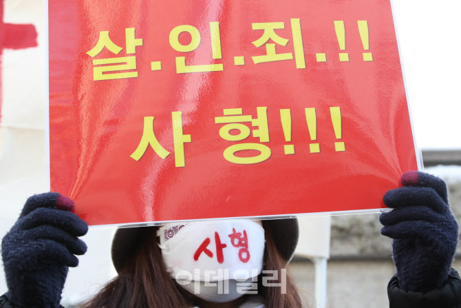 [포토]정인이 피의자를 향해 '사형' 마스크 쓴 시민