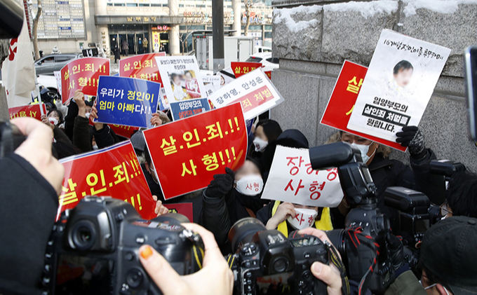 이날 남부지법 인근에서는 대한아동학방지협회 회원들과 시민들이 장씨의 살인죄 혐의 적용을 요청하는 시위에 나서기도 했다. 남부지법 앞에는 '정인아 어른들이 미안해’ 등이 적힌 근조 화환들이 자리했다.