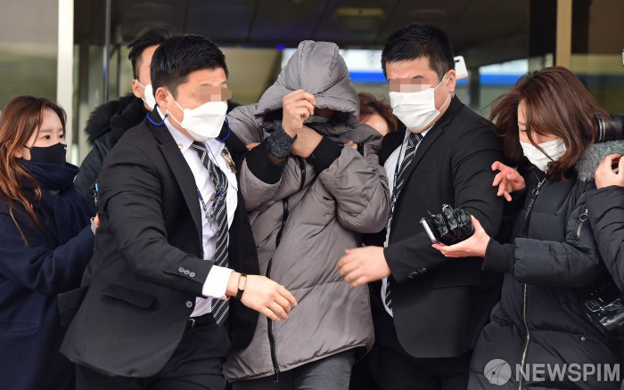 [서울=뉴스핌] 정일구 기자 = 16개월 된 입양 딸 정인 양을 학대해 숨지게 한 혐의를 받는 양부 안모 씨가 13일 오전 서울 양천구 서울남부지방법원에서 열린 첫 공판을 마치고 법원을 나서고 있다. 2021.01.13 mironj19@newspim.com