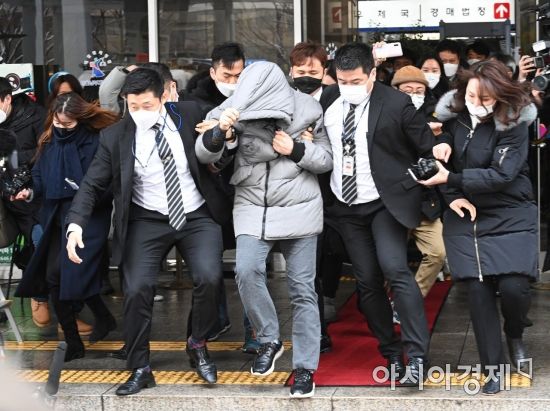 정인양을 입양한 후 수개월간 학대해 사망에 이르게 한 혐의를 받는 양부 안모씨가 13일 서울 양천구 서울남부지방법원에서 열린 아동복지법위반(아동유기·방임) 등 첫 공판을 마치고 법원 청사를 빠져나가고 있다./김현민 기자 kimhyun81@