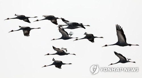 떼지어 나는 재두루미 |