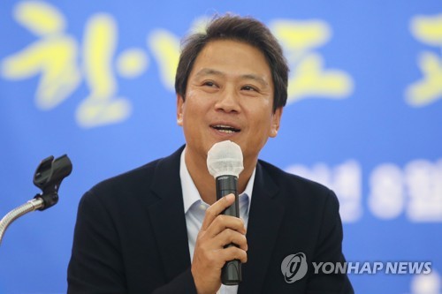 지난해 8월 18일 오후 광주 남구청 대회의실에서 열린 남북경제문화협력재단(경문협)과의 업무협약식에서 경문협 이사장을 맡고 있는 임종석 이사장(대통령 외교안보 특별보좌관)이 인사말을 하고 있다. [연합뉴스 자료사진] |