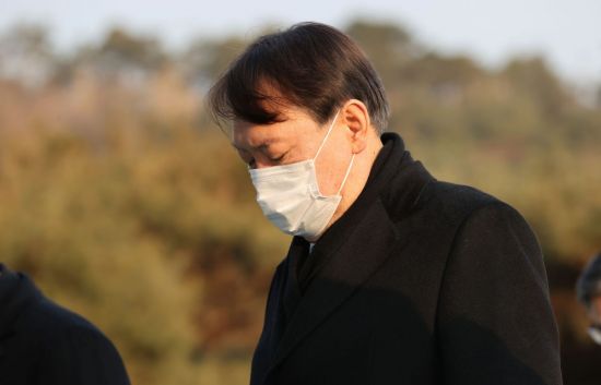 윤석열 검찰총장이 4일 오전 서울 동작구 국립서울현충원에서 참배하고 있다. [이미지출처=연합뉴스] |