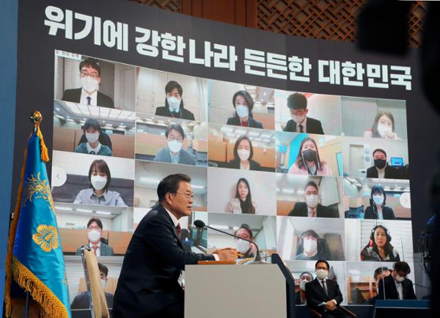 문 대통령은 기자회견 등 언론과의 접촉이 부족했던 이유로 신종 코로나바이러스 감염증(코로나19)을 꼽았다. 문 대통령은 "지난 1년 간 코로나 상황 때문에 기자들과의 소통이 어려운 상황이었다"고 했다.