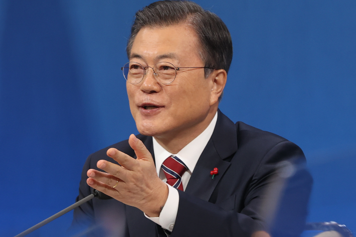 신년 기자회견 질문을 받는 문재인 대통령. 연합뉴스 |