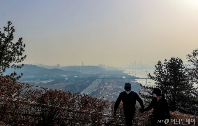 중국발 스모그와 황사로 전국 대부분 지역의 미세먼지 농도가 '나쁨' 수준을 보인 14일 경기 고양시 행주산성에서 바라본 도심이 뿌옇게 보이고 있다. / 사진=이기범 기자 leekb@ |