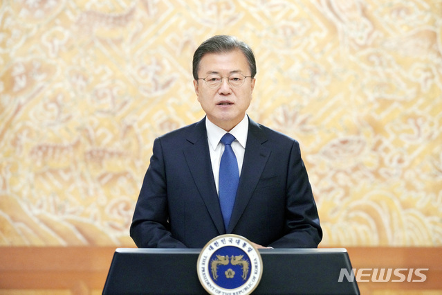 [서울=뉴시스]문재인 대통령이 지난 12일 화상으로 진행된 ‘기후목표 정상회의’(Climate Ambition Summit)에 영상을 통해 연설하고 있다.(사진=청와대 제공) 2020.12.13. photo@newsis.com |