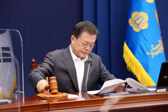 문재인 대통령이 19일 청와대에서 열린 국무회의를 주재하고 있다. 연합뉴스 |
