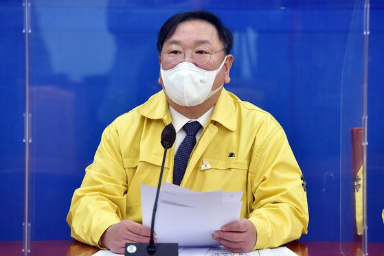 김태년 더불어민주당 원내대표가 18일 오전 원내대책회의에서 한 말이다. 김 원내대표는 “올해 1월부터 검경수사권 조정 시행으로 직접수사 건이 80% 이상 대폭 축소될 예정임에도 불구하고 (검찰) 수사 인력과 조직은 예정 그대로 상태”라며 “기소권 중심의 조직 정비를 위한 검찰의 제도 개혁에 박차를 가해야 한다”고 말했다.