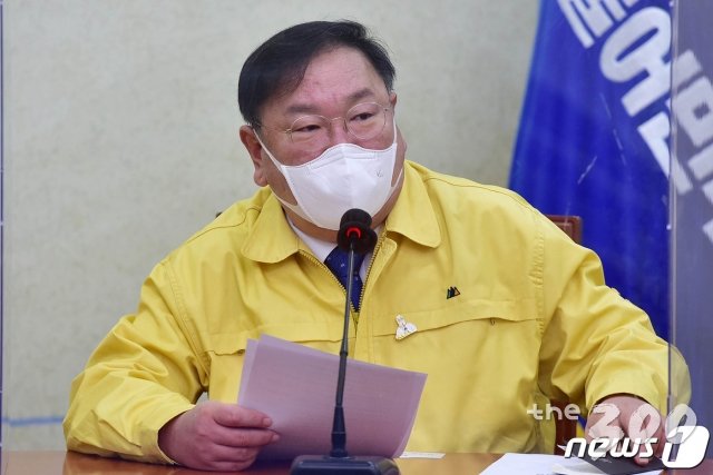 (서울=뉴스1) 성동훈 기자 = 김태년 더불어민주당 원내대표가 20일 오전 서울 여의도 국회에서 열린 최고위원회의에서 모두발언을 하고 있다. 2021.1.20/뉴스1 |