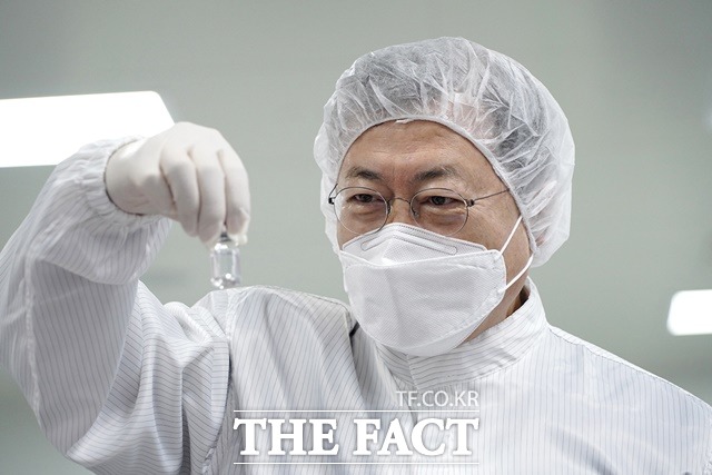 [더팩트ㅣ청와대=허주열 기자] 문재인 대통령이 국내 코로나19 첫 환자 발생일로부터 1년째 되는 날인 20일 경북 안동 SK바이오사이언스 공장을 찾아 코로나 백신 생산현장을 시찰하고, 백신 추가 확보 등과 관련한 새로운 사실을 발표했다.