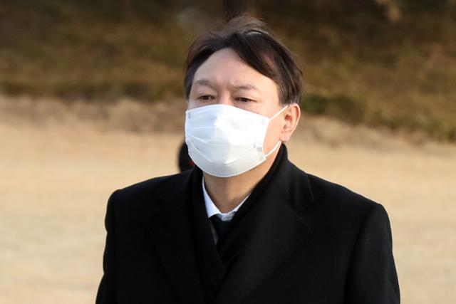 윤석열 검찰총장이 지난 4일 오전 서울 동작구 국립 서울현충원에서 참배하기 위해 발걸음을 옮기고 있다. 뉴스1 |