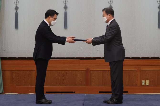 문 대통령은 이날 오전 11시 청와대 본관 1층 충무실에서 김 처장에 임명장을 수여했다. 이후 인왕실로 이동해 환담을 가졌다.