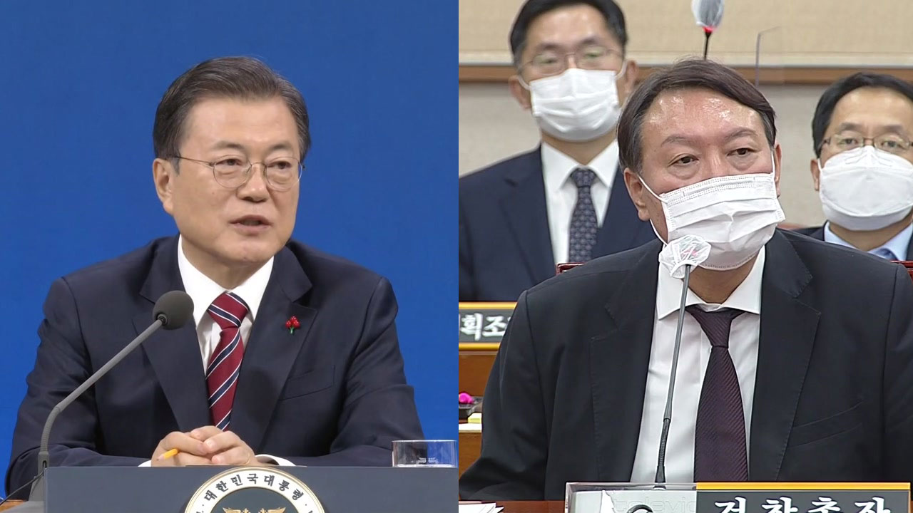문재인 대통령이 신년회견에서 윤석열 검찰총장을 끌어안으면서 지난해 극심했던 법무부-검찰 갈등에 종지부를 찍었습니다.