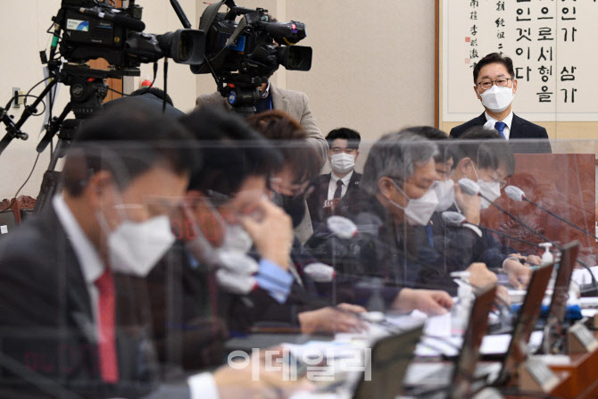 [이데일리 노진환 기자] 박범계 법무부 장관 후보자가 25일 오전 서울 여의도 국회 법제사법위원회에서 열린 인사청문회에 출석해 모두발언을 하고 있다.