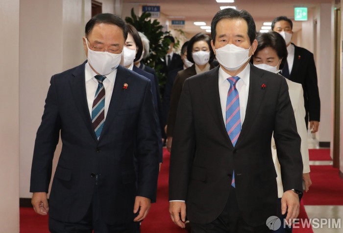 홍남기 부총리 겸 기획재정부 장관은 지난 22일 페이스북을 통해 "재정은 화수분이 아니기 때문에 상황과 여건을 고려해야 한다"며 "우리 재정은 코로나 위기를 극복하면서 국가채무가 빠르게 늘어나는 등 여건이 악화되고 있다"고 말했다. 그는 전날 고위당정협의회에도 건강상의 이유로 불참한 것으로 알려졌다.