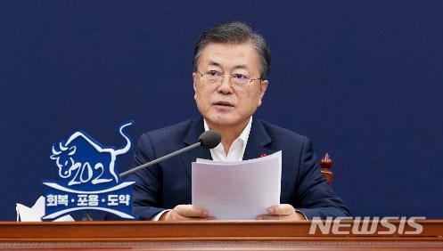 문 대통령은 이날 오후 청와대에서 비대면 화상으로 보건복지부·식품의약품안전처·질병관리청 등 코로나19(COVID-19) 관련 부처로부터 올해 업무보고를 받고 이같이 말했다.