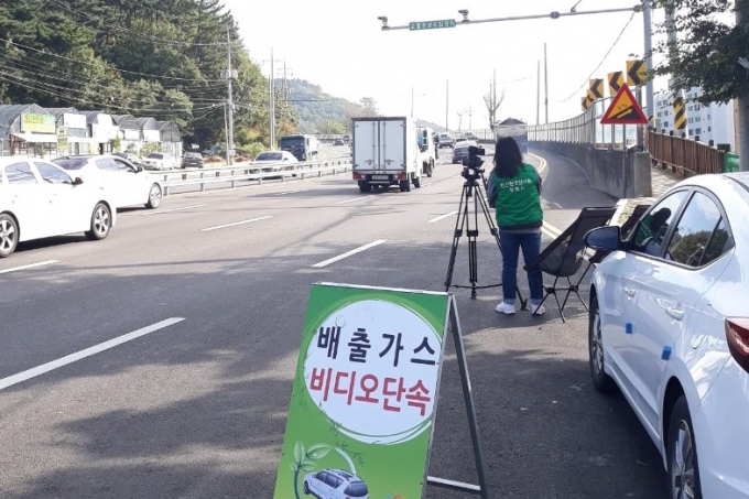 배출가스 비디오 단속을 하고 있는 모습./사진제공=경남도 |