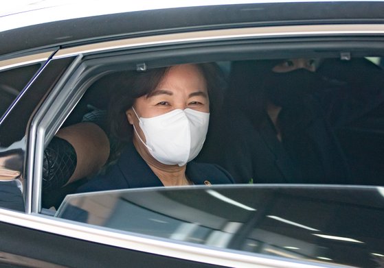 추미애 법무부 장관이 27일 오후 정부과천청사에서 이임식을 마친 후 나서고 있다. 뉴스1 |