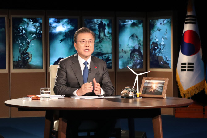 문재인 대통령이 27일 오후 청와대에서 화상으로 열린 2021 세계경제포럼(WEF) 한국정상 특별연설에 참석, 연설하고 있다. (사진=연합뉴스) |