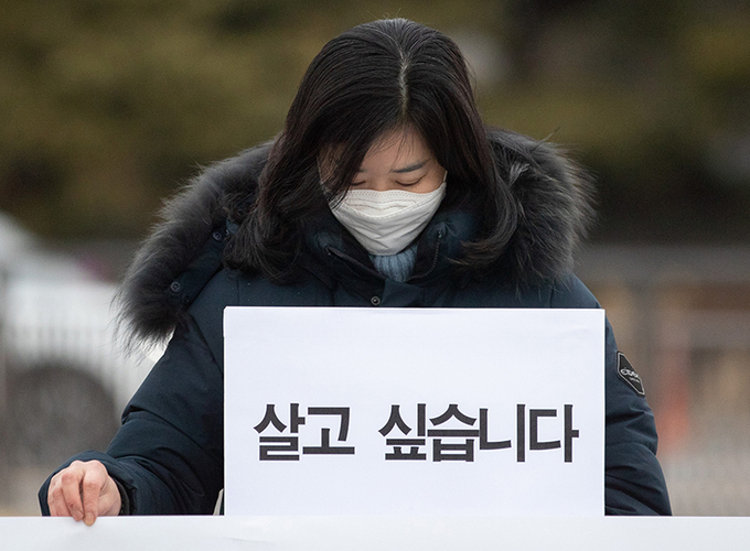 이날 회견에서 참석자들은 “오늘도 우리들의 하루는 절망으로 시작한다”면서 문 대통령에게 중소상인·자영업자들의 생존권 보장을 위한 특단의 대책을 요구했다. 이들은 “지난 1년간 정부의 영업금지와 제한조치가 수차례 반복될 때도 중소상인·자영업자들이 강한 반발의 목소리를 내지 않은 것은 당장 우리가 손해를 보더라도 코로나19가 빠르게 종식되기를 바라는 마음 때문이었다”면서 “그럼에도 불구하고 지난달과 이번달을 기점으로 수많은 중소상인·자영업자들이 모임을 만들어 정부의 방역지침과 지원대책에 문제 제기를 시작한 것은 더 이상은 버틸 수 없다는 절박함과 절벽 끝에 내몰린 나와 가족들의 생존권 때문”이라고 호소했다.