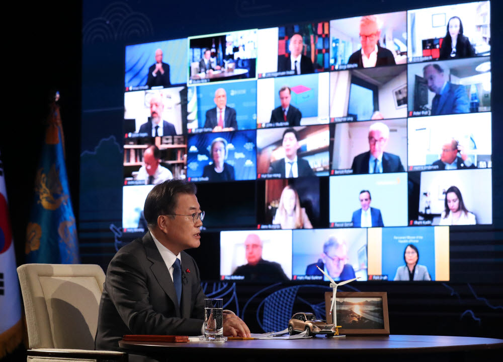 짐 스나베 지멘스 회장도 문 대통령 연설이 영감을 주는 세션이었다고 평가했다. 오릿 가디쉬 베인 앤 컴퍼니 회장은 한국판 뉴딜 등을 언급하며 “한국이 갖는 진정한 자산과 역량이 무엇인지 잘 확인할 수 있었다고 본다”고 했다.