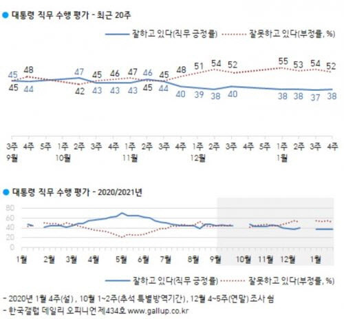 한국갤럽 1월 4주차 조사..긍정평가 1%p 상승