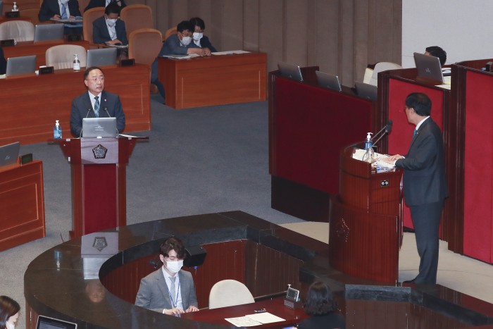 31일 기획재정부에 따르면 홍남기 부총리 겸 기재부 장관은 다음 달 5일 국회에서 열리는 경제분야 대정부 질문에 출석한다. 이번 대정부 질문에선 4차 재난지원금 지급을 위한 재원 마련 방안과 손실보상법 제도화에 대한 공방이 있을 것으로 보인다.