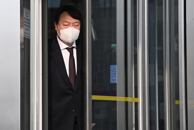 윤석열 검찰총장이 1일 오전 경기도 과천시 정부과천청사에서 박범계 신임 법무부 장관과의 면담을 마친 뒤 법무부 청사를 나서고 있다. 윤 총장은 박 장관 예방 전 "취임 축하 차원으로 온 것"이라 말했으며, 만남 후에는 "서로 덕담만 나눴다"고 밝혔다./과천=오승현기자 2021.02.01