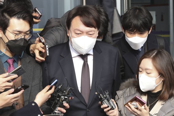 윤석열 검찰총장이 1일 경기도 과천시 정부과천청사 법무부에서 박범계 법무부 장관을 예방 한 후 청사를 나서고 있다. 두 사람이 공개적으로 만나는 것은 지난해 10월 대검찰청 국정감사 이후 처음이다. 사진=박범준 기자 |