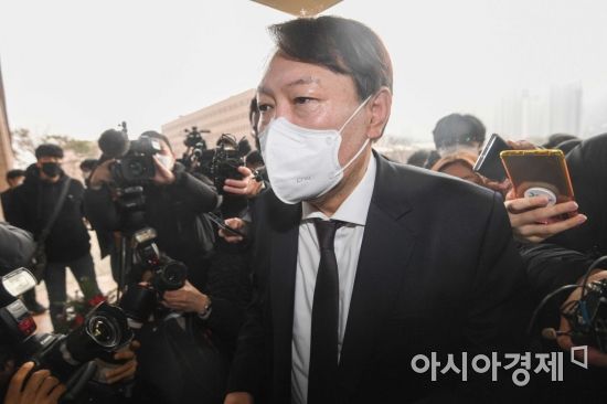 윤석열 검찰총장이 1일 경기 정부과천청사에서 취임식을 앞둔 박범계 법무부 장관을 예방하기 위해 법무부 청사로 들어서고 있다./과천=강진형 기자aymsdream@ |