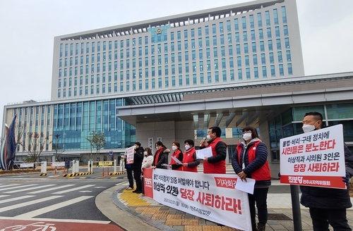 (전주=연합뉴스) 임채두 기자 = 진보당 전주시지역위원회가 1일 무소속 이상직 의원에 대한 엄중 처벌과 즉각 사퇴를 촉구했다.