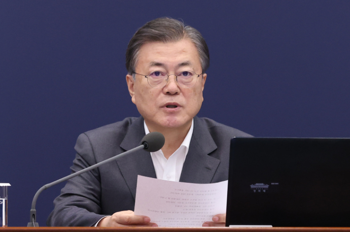 문 대통령은 "방역 조치의 거듭된 연장으로 소상공인과 자영업자의 어려움은 더욱 가중되고, 취약계층의 삶은 더욱 힘겨워지고 있다"며 "소상공인 버팀목 자금과 긴급고용안정지원금 등 3차 재난지원금이 빠르게 지급되고 있지만, 계속 이어지는 피해를 막기에는 매우 부족하다"고 평가했다.