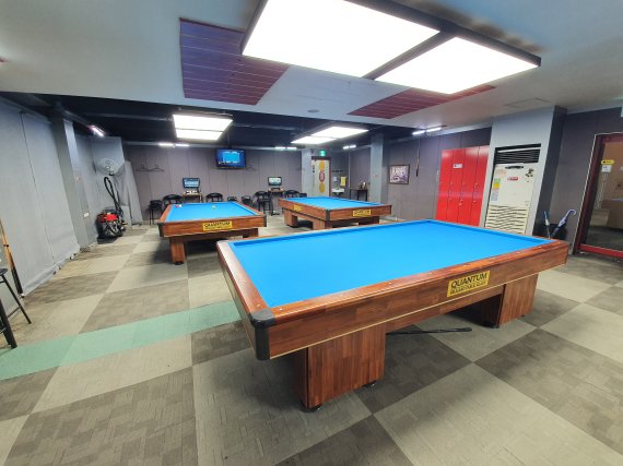 코로나19 사태에 따른 정부의 오후 9시 이후 집합금지 연장 조치로 2일 오후 7시께 텅빈 당구장 내 모습. /사진=김태일 인턴기자 |