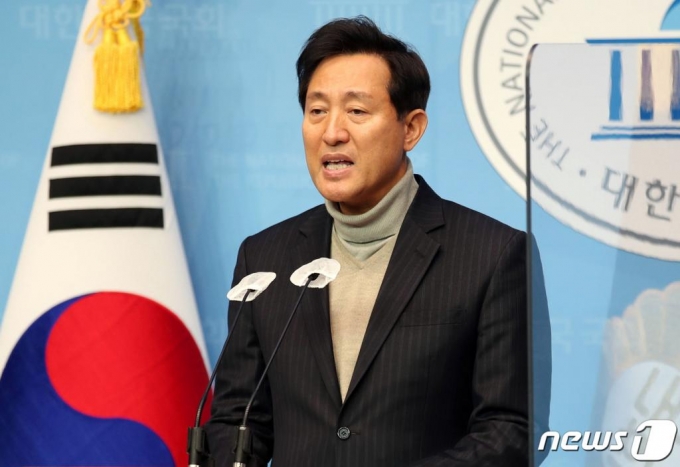 서울시장 보궐선거 출마를 선언한 오세훈 전 서울시장이 지난 3일 서울 여의도 국회 소통관에서 재산세 감면 관련 공약발표를 하고 있다. /사진=뉴스1 |