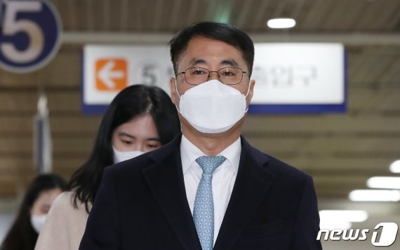 '사법행정권 남용' 혐의를 받는 유해용 전 대법원 수석재판연구관이 4일 오후 서초동 서울고등법원에서 열린 항소심 선고공판에 출석하고 있다. /사진=뉴스1 |
