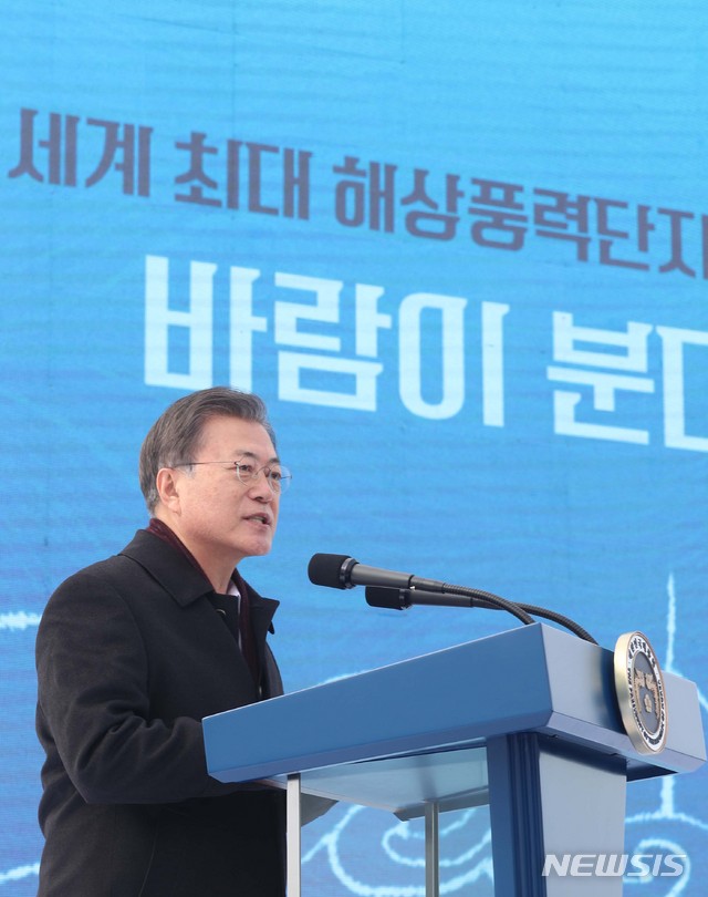 [the300]문재인 대통령이 5일 "오늘 첫발을 내딛는 신안 해상풍력 사업을 신속하게 추진하겠다"며 "전 세계 해상풍력은 매년 30% 가까이 성장하고 있다. 우리는 삼면이 바다로 해상풍력의 무궁한 잠재력을 가지고 있고, 해양플랜트와 철강 등 관련 분야에서 세계 최고 기술력을 보유하고 있어 경쟁력도 뒤지지 않는다"고 밝혔다.