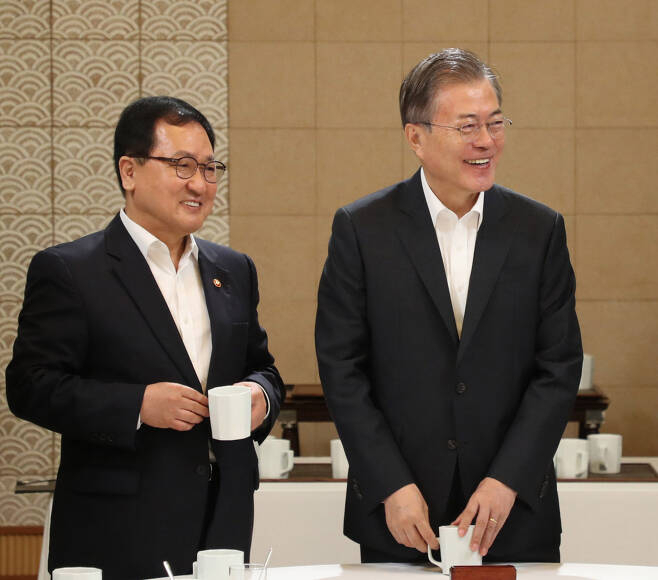 문재인 대통령과 과학기술정보통신부 전 장관 시절 유영민 청와대 비서실장의 모습[연합] |