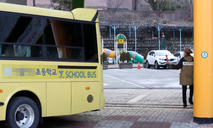 신종 코로나바이러스 감염증(코로나19) 확산으로 크게 줄었던 등교수업이 유아·초등 저학년·특수학교부터 확대되는 27일 오전 서울 중구의 한 초등학교에서 학교 버스가 이동하고 있다./사진=뉴시스 |