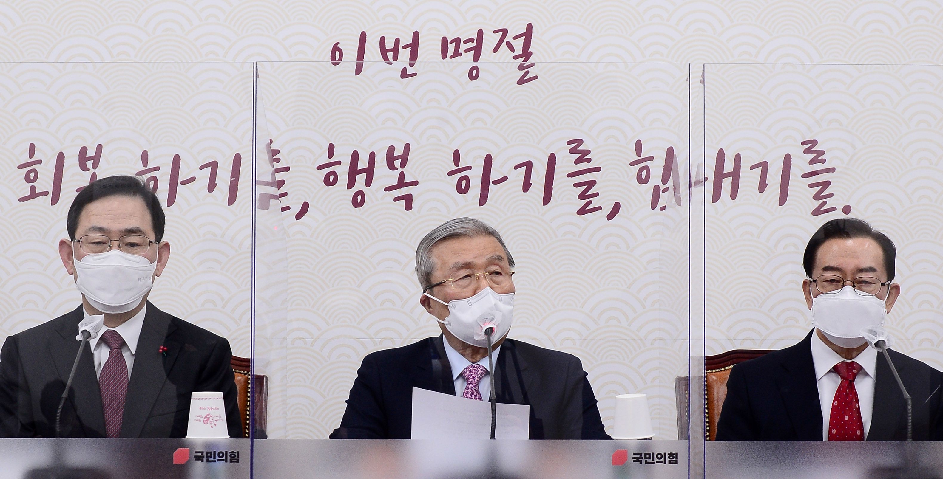 국민의힘 김종인 비상대책위원장이 8일 오전 서울 여의도 국회에서 열린 비상대책위원회의에 참석해 발언을 하고 있다. |