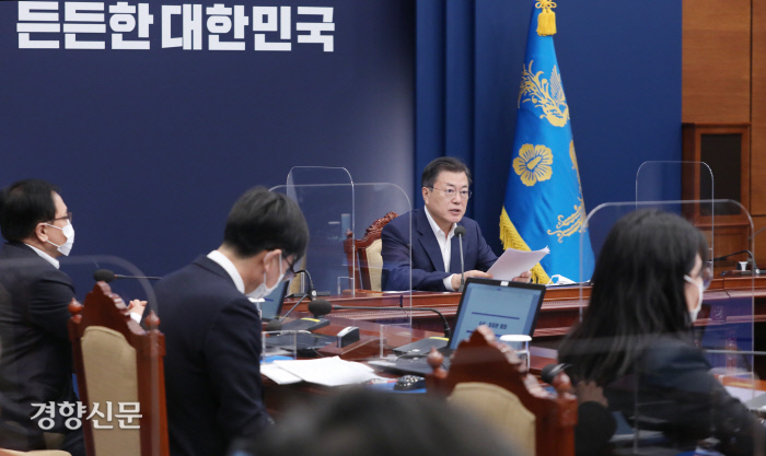 문 대통령은 이날 수석·보좌관 회의에서 “현실적인 여건 속에서 무엇이 최선인지 판단하기란 쉽지 않다. 사회 모두가 지혜를 모으고, 특히 정치권이 정파적 이해를 뛰어넘어 초당적으로 협력해야 할 과제”라며 이같이 밝혔다. 4차 재난지원금의 선별지급이냐 보편지급이냐를 둘러싸고 여야, 당정간 이견이 이어지는 가운데 ‘과감한 지원’을 주문하면서도 ‘재정이 감당할 수 있는 범위’ 내에서 정치권이 합의안을 도출해줄 것을 촉구한 것으로 해석된다. 문 대통령은 “최종적인 책임은 정부에게 있다”면서 “정부가 책임을 다할 수 있도록 모두가 함께 지혜를 모아주시고, 마음을 모아주실 것을 당부드린다”고 강조했다.