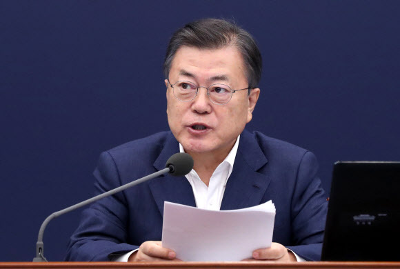 문재인 대통령이 8일 오후 청와대에서 열린 수석·보좌관 회의에서 발언을 하고 있다. 연합뉴스 |