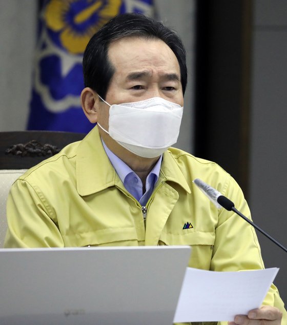 정세균 국무총리가 9일 정부세종청사에서 코로나19 중앙재난안전대책본부 회의를 주재하고 있다. 뉴스1 |
