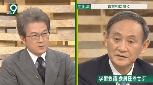 아리마는 NHK에 출연한 스가 총리를 인터뷰하면서 당시 논란이 됐던 일본학술회의 회원 임명 거부 문제를 집요하게 질문했다.