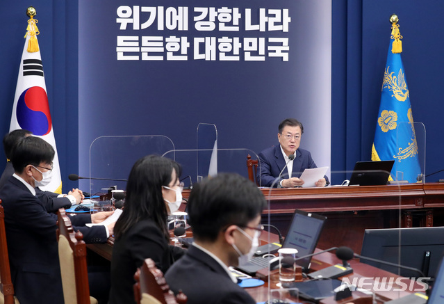 [서울=뉴시스]박영태 기자 = 문재인 대통령이 8일 오후 청와대 여민관에서 열린 수석 보좌관회의에 참석해 발언하고 있다. 2021.02.08. since1999@newsis.com |