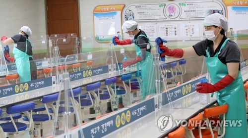 학생 맞을 준비 분주한 급식실 |
