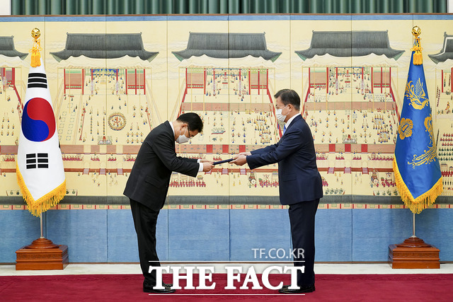[더팩트ㅣ이철영 기자·청와대=허주열 기자] 문재인 대통령은 15일 정의용 신임 외교부 장관에게 "한반도 평화 프로세스가 성공하려면 한미동맹을 강화해야 한다"고 당부했다.