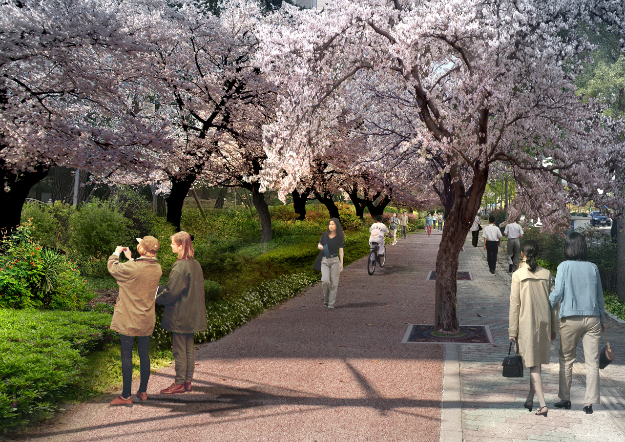증산역로 벚꽃길, 청운로 대왕참나무숲, 황산로 테마 바람길숲 조성