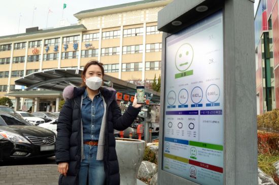 이를 통해 이용자는 지역내 어디서나 현재 위치 · 동별 초미세먼지 현황, 경보 기준 및 행동요령 등을 즉시 확인할 수 있다.