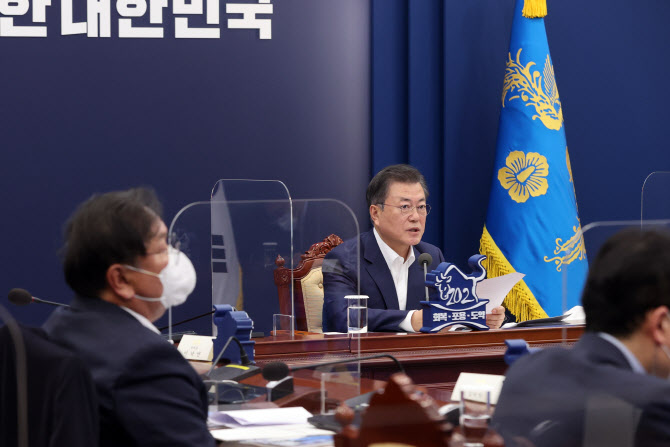 문재인 대통령이 16일 오후 청와대에서 화상회의 형식으로 열린 국토교통부 2021년 업무보고에서 발언하고 있다. (사진=연합뉴스) |